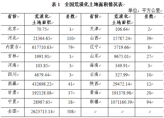 截至2009年底,全國荒漠化土地總面積262.37萬平方公里,占國土總面積的27.33%,分布于北京等18個省的508個縣(旗、區(qū))。動態(tài)情況,2005-2009年五年間年均減少2491平方公里。